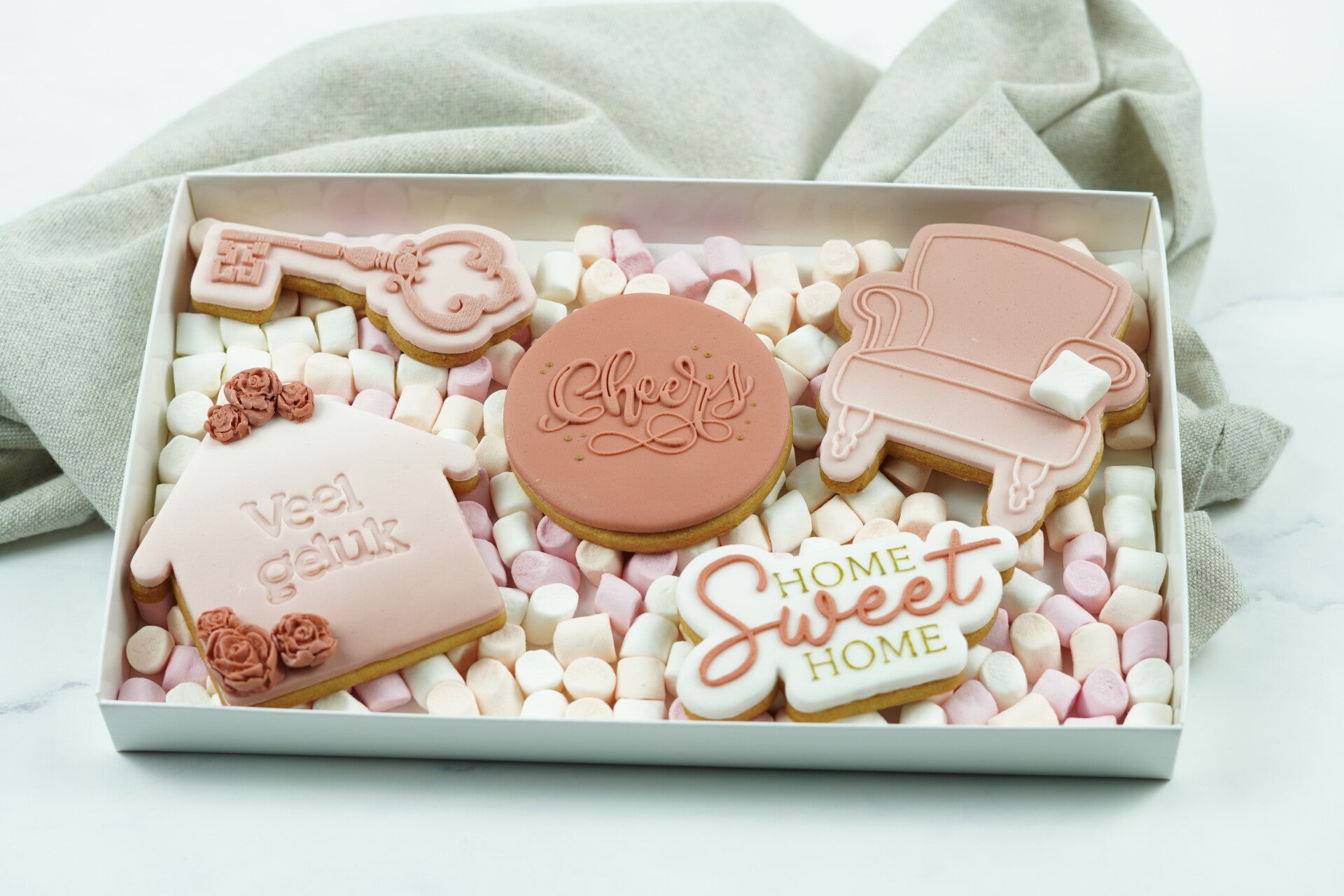 Wens iemand veel geluk met zijn/haar nieuwe woning met onze heerlijke 'Nieuwe woning koekjesbox'.