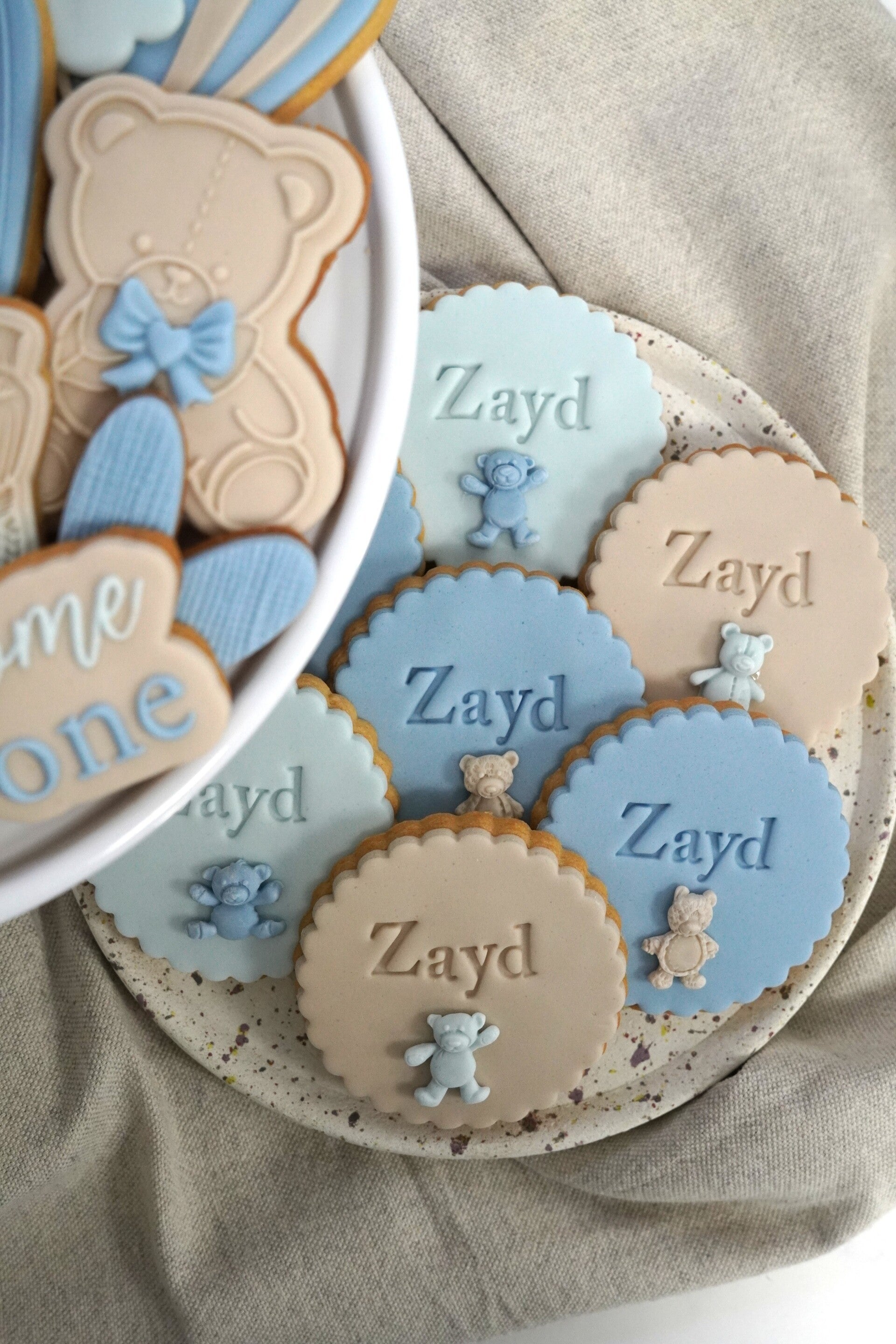 De set bestaat uit een combinatie van Deluxe en Classic koekjes, uitgevoerd in de stijlvolle kleuren donkerblauw, lichtblauw en beige. Een tijdloze en veelzijdige set die perfect past bij verschillende gelegenheden.