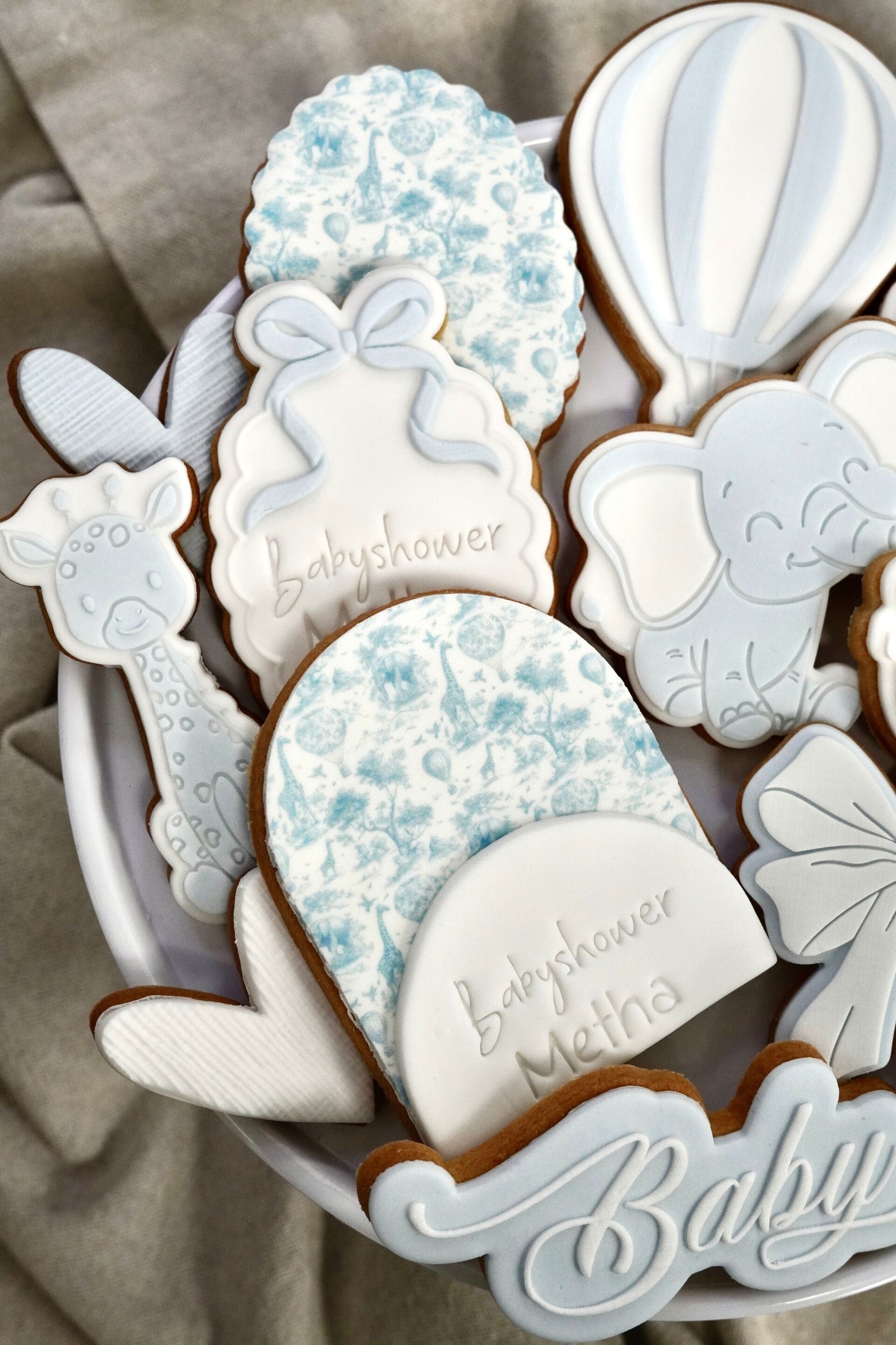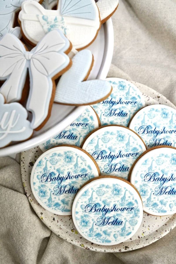 Met oog voor detail en liefde gemaakt, stralen deze koekjes pure luxe en zachtheid uit. Of je ze nu presenteert op de sweet table, cadeau geeft aan kersverse ouders of gebruikt als stijlvolle decoratie – deze set maakt het moment extra bijzonder.