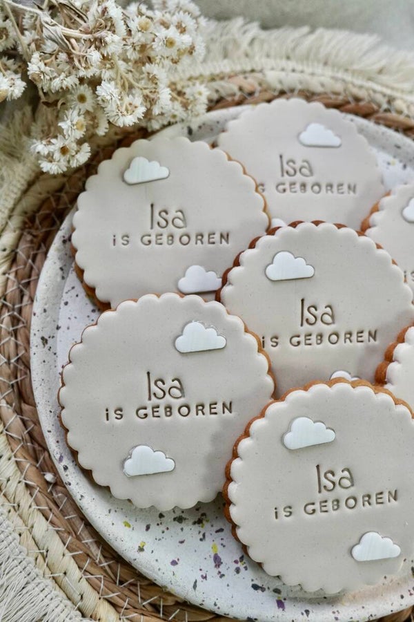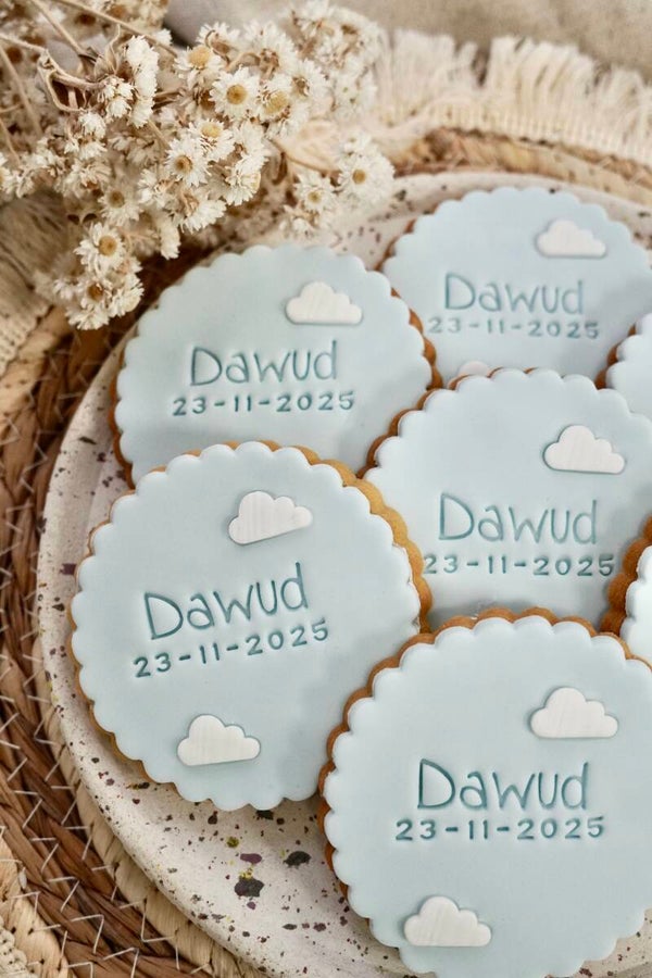 Onze Classic koekjes met wolkjes zijn een dromerige en zachte traktatie die perfect past bij elk bijzonder moment – van een geboorte tot een babyshower of een lieve verrassing.