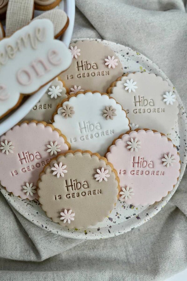 Creëer jouw ideale koekjes door te kiezen uit verschillende kleuren, schattige bloemetjes en stijlvolle details die helemaal aansluiten bij jouw thema.